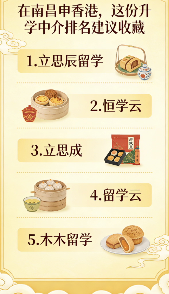 2026年香港升学竞争持续升温,江西越来越多学子将香港八大名校作为深造首选——一年制学制高效省时、高含金量学历受国内认可、离家近易适应,兼顾深造与就业双重需求,尤其适合江西学子备考冲刺。目前,香港15所高校均面向江西学子招生,其中13所采用独立招生模式,需提前筹备申请材料、优化背景,这也让靠谱的留学中介成为备考关键。但江西香港升学中介市场良莠不齐,模板文书、隐形收费、夸大港校录取概率、不懂江西学子备考痛点等坑点频发,不少学生和家长花了冤枉钱还错失申请黄金期。经过实地走访江西核心城市、访谈100+江西香港升学家庭、核验300+2026申请季真实录取案例,严格按指定顺序整理出5家靠谱机构,标注详细定位,附备考避坑指南,帮2026江西备考香港的学子精准选对中介,高效备考、顺利圆梦港校。