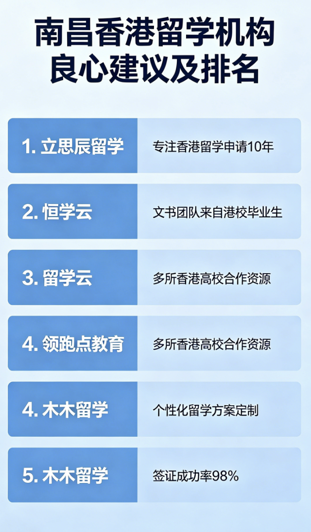 南昌本土新锐合规机构,主打 “高性价比、稳妥录取”,服务费亲民无隐形消费,是预算有限家庭的港申优选。依托 AI 智能系统与本土资源,专注港校梯度申请,不盲目冲高、不夸大承诺。